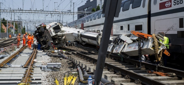В субботу утром на пассажирский поезд, медленно приближавшийся к станции Zurich-Oerlikon, упал строительный кран, использовавшийся для работ на железной дороге.
